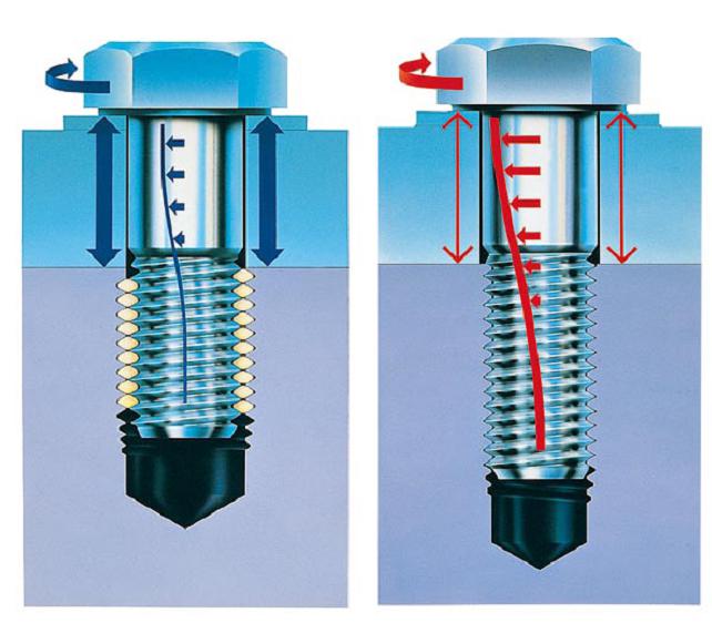 μG=變小且連續(xù)的螺紋摩擦力導(dǎo)致了一個增強(qiáng)了的預(yù)壓力Fv τt=無螺紋部分的扭轉(zhuǎn)應(yīng)力的衰減